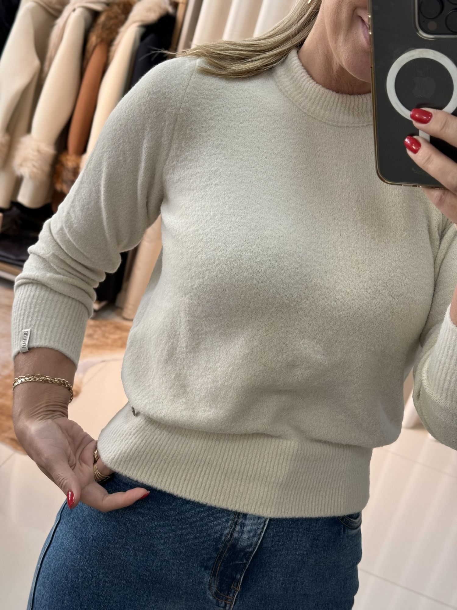 Blusa Biamar Em Fio Pluma Com Gola Redonda Bege 0706